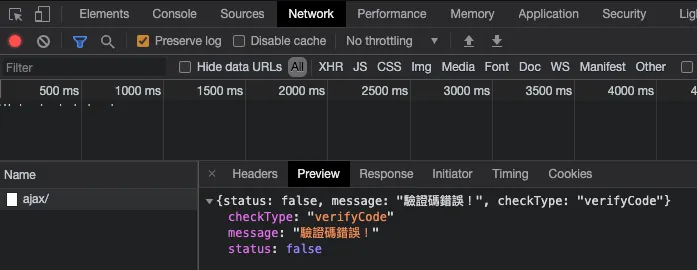前後端が分離したウェブサービスでも、Chrome → 検査 → Network → 認証コード送信後にどんなリクエストが送られたかを確認できます。