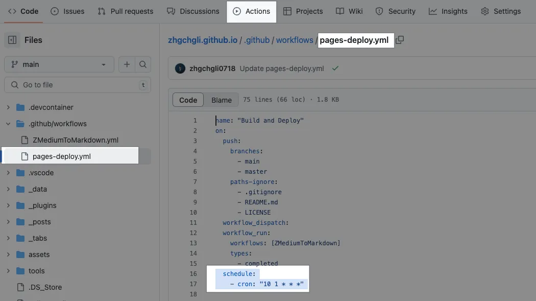 最後に Github Pages リポジトリの Actions にスケジュールを追加して定期的にサイトを自動再生成することで、完了しました: