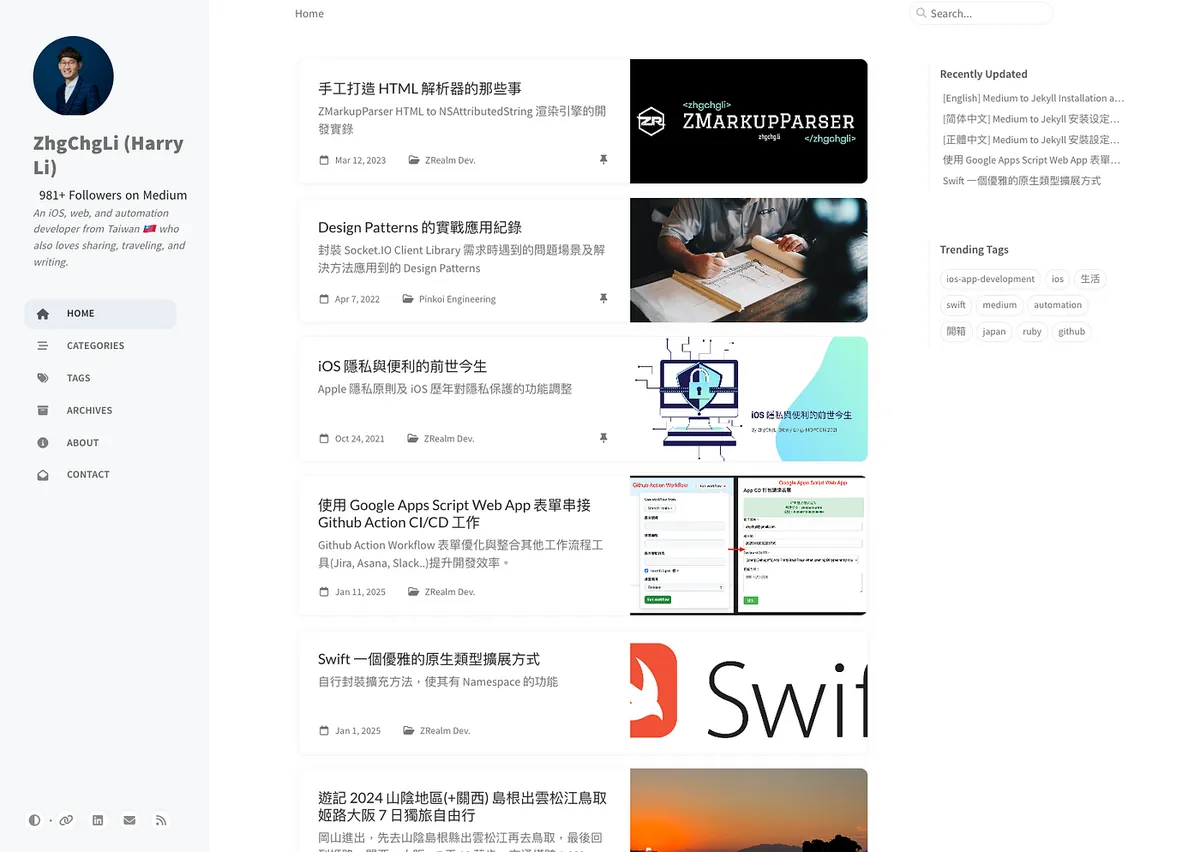 手順ごとの設定方法は、こちらの記事をご参照ください: https://zhgchg.li/posts/medium-to-jekyll/