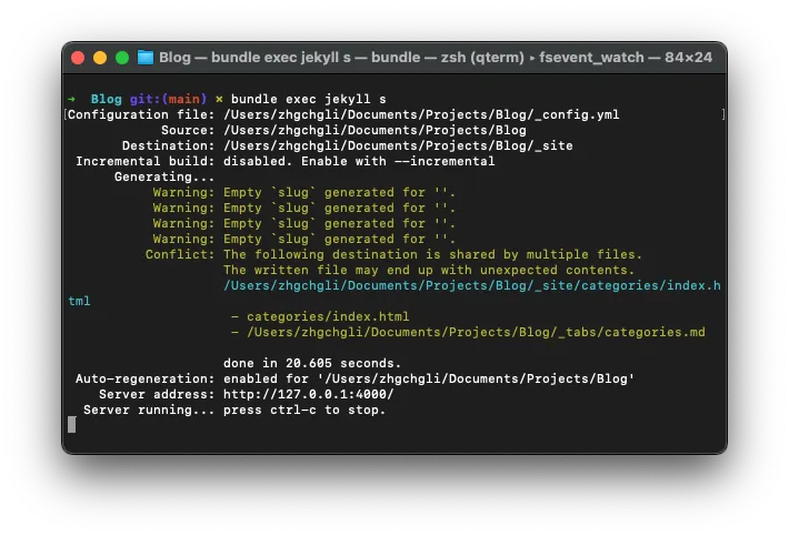 保存後は、まずローカルで bundle exec jekyll s を実行して結果をテストできます: