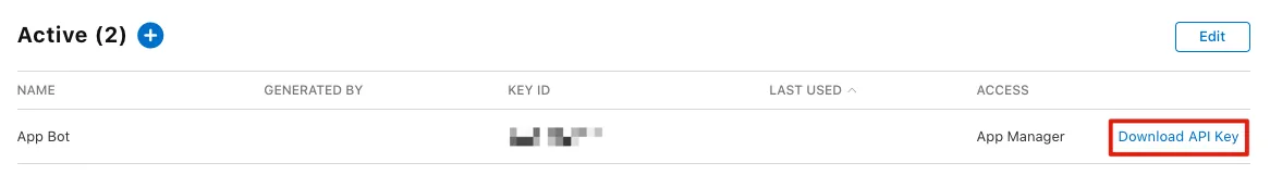右側の「Download API Key」をクリックして、「AuthKey_XXX.p8」キーを保存してください。