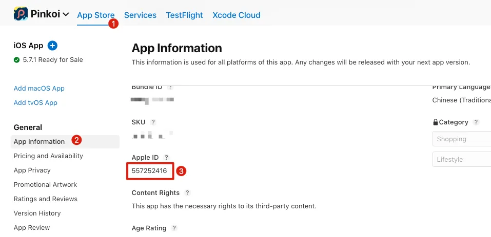 APPIDは App Store Connect の管理画面から取得できます: