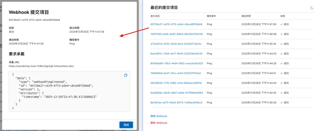 承載 URL(Payload URL):Webhook 通知を受信するサービスの URL を入力してください