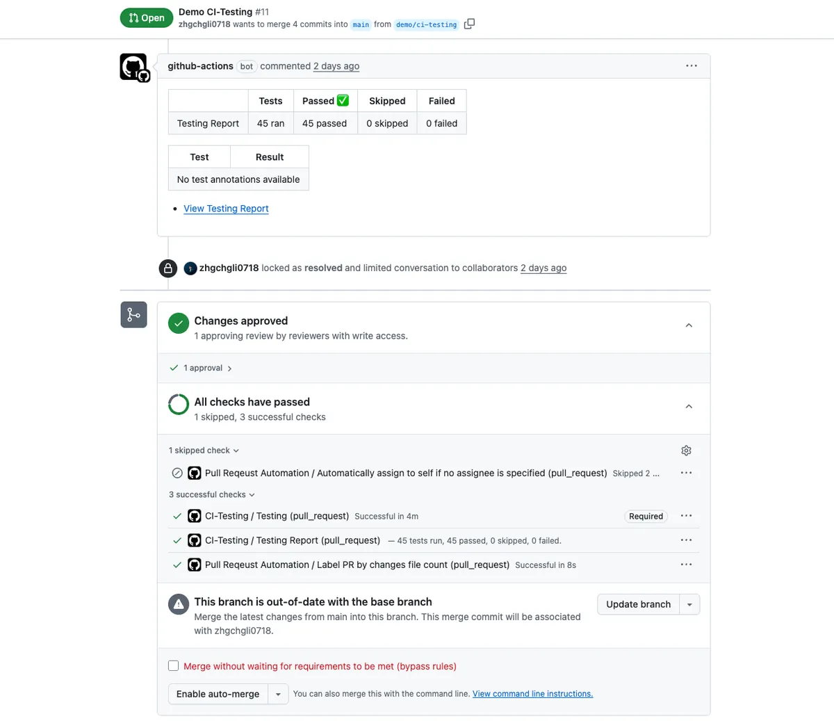 テストが通過した後にのみPRをマージ可能