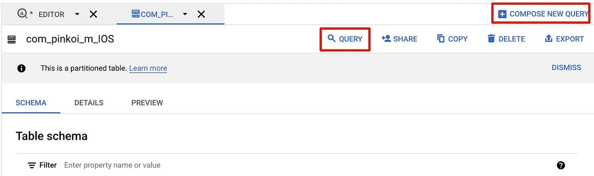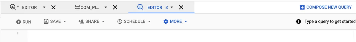 または「COMPOSE NEW QUERY」をクリックして、空白のクエリエディタを開きます: