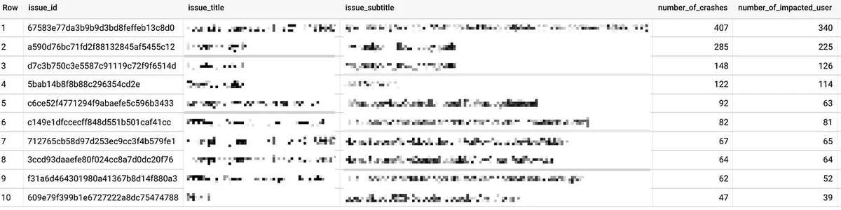 var iOSTop10Crashes = queryiOSTop10Crashes();