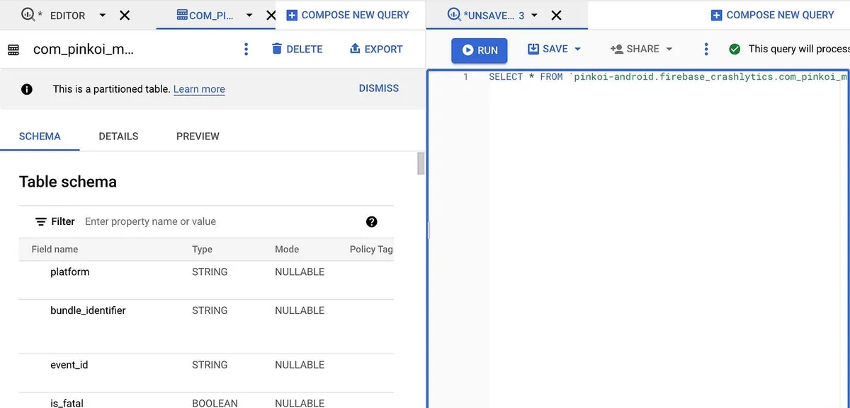 Big QueryでCrashlyticsログのクエリを開始する