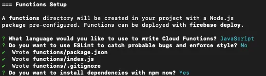 ここでは、ほとんどのアプリが使用する Firebase サービスの中から、Functions と Firestore の機能を選択しています。