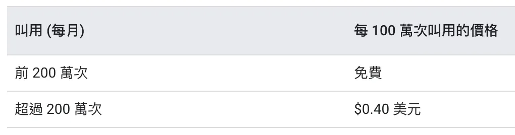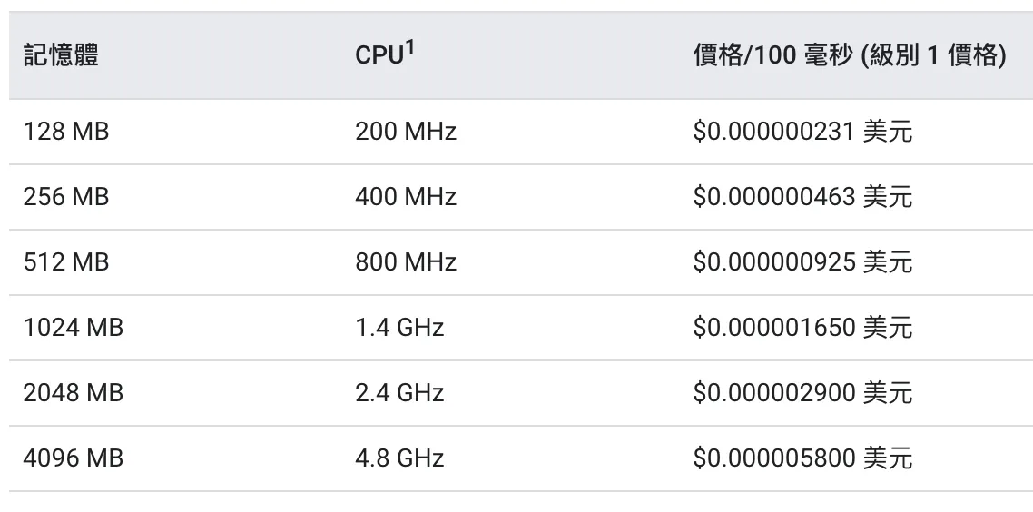 Cloud Functions は計算時間リソースに対して永久無料プランを提供しており、GB/秒および GHz/秒の計算時間が含まれます。200万回の呼び出しに加えて、無料プランでは 400,000 GB/秒 と 200,000 GHz/秒 の計算時間、さらに毎月 5 GB のインターネットアウトバウンドトラフィックも提供されます。