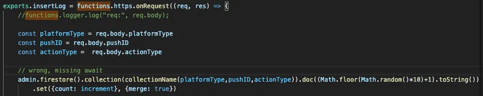 await admin.firestore().collection(platformType).doc(actionType+"_"+pushID).collection("shards").doc((Math.floor(Math.random()*10)+1).toString())