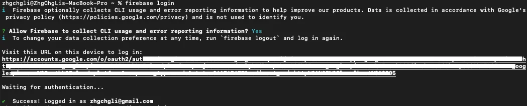 このディレクトリで Firebase プロジェクトを初期化しようとしています: