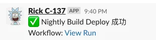 text: ":white_check_mark: Nightly Build デプロイ成功\nWorkflow: <${{ github.server_url }}/${{ github.repository }}/actions/runs/${{ github.run_id }}\\|実行を見る>"