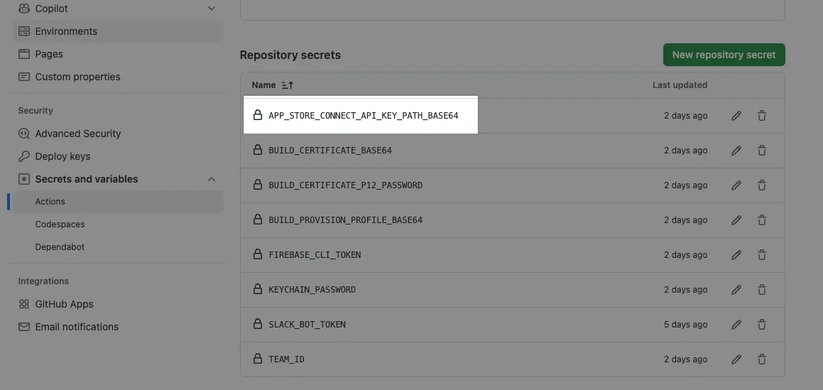 Step 3. Action のリポジトリに SSH プライベートキーを Secrets として設定する