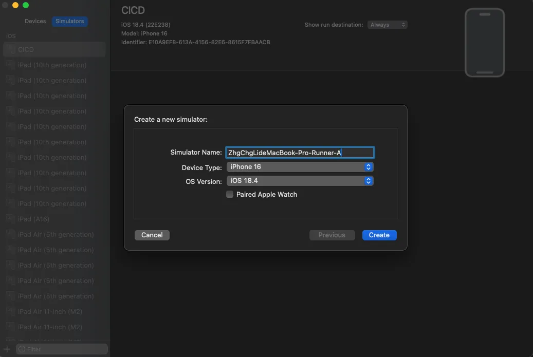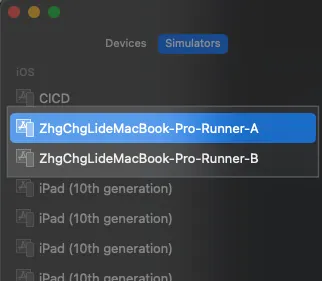 同じコンピュータ上で複数の Runner を使う問題は、上記の Actions でほとんど解決しています。例えば、すべての依存する共有ディレクトリをローカルディレクトリに変更することです。また、テストで直面する問題の一つに、シミュレーターの競合があります:「同じマシン上で2つの Runner が同時に2つのテストジョブを実行し、同じシミュレーターを指定すると、互いに干渉してテストが失敗する。」
