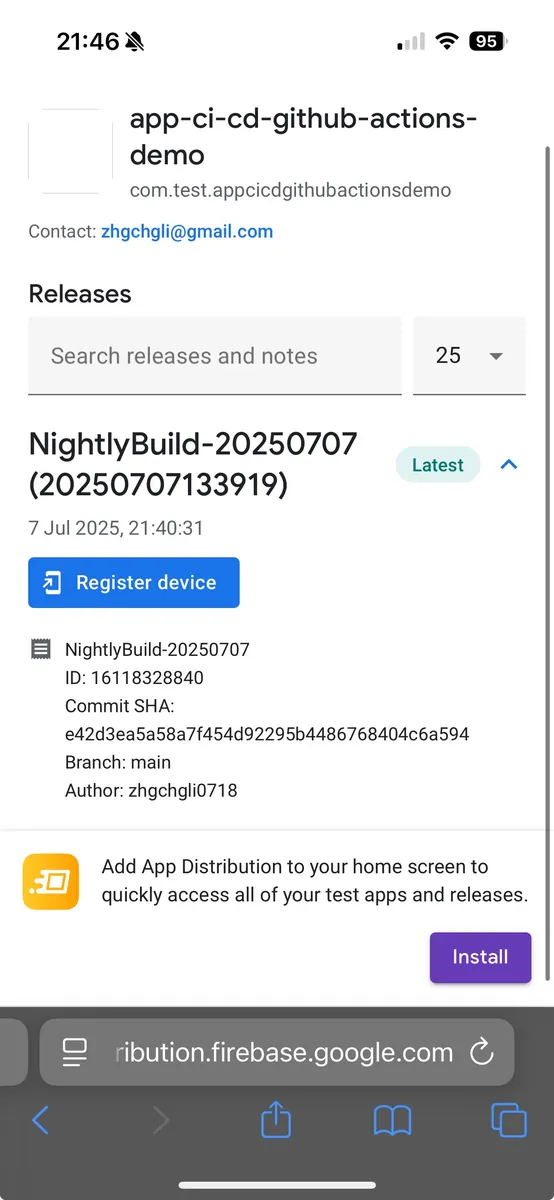 私たちは直接スマホにNightly Build版をインストールして、先行体験テストを行うことができます。