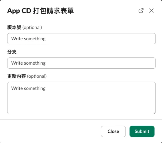 最初は以前のチームの経験に基づいて Slack App を CI/CD GUI フォームサービスとして使おうと考えましたが、現在は以前のように Kotlin+Ktor でサービスを構築するリソースがありません。そのため、まずは Function as a Service で手早く構築を試みようと思いました。