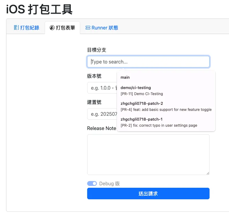 以上は GAS 自体のサービスの長所短所ですが、パッケージングツールの Web に与える影響はあまり大きくありません。この方法を Slack 方式と比較して選ぶと、より速く、軽量で、引き継ぎやすいという利点があります。欠点はチームがこのツールの URL と使い方をよく知っている必要があり、また GAS のライブラリ機能が限られていること(例:組み込みの暗号化アルゴリズムライブラリがない)ため、基本的に純粋な中継プラットフォームしか作れません。例えば審査申請を送る場合も、GitHub Actions に送信リクエストを転送するだけになります。