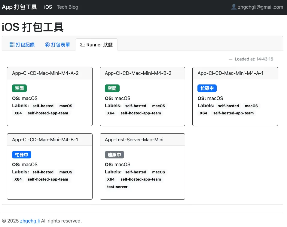 View_iOS_Runners.html: iOS ビルドツール — セルフホステッドランナーのステータスページ