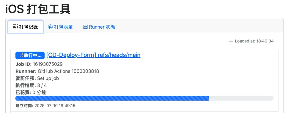 View_iOS_Runs.html: iOS パッケージングツール — パッケージ履歴内容ページ