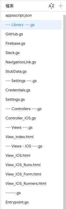 - Controller_iOS.gs: iOSパッケージツールページのコントローラーで、Viewに表示するためのデータ取得を担当します