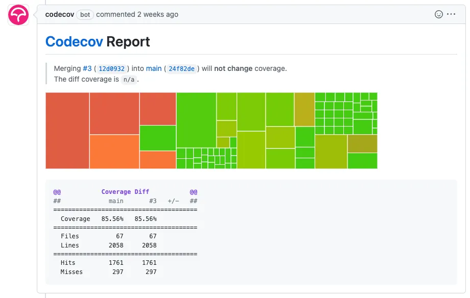 この設定は、PRがオープン/再オープンされたとき、またはmainブランチにプッシュされたときにビルドとテストを実行し、最後にテストカバレッジのレポートをcodecovにアップロードします。