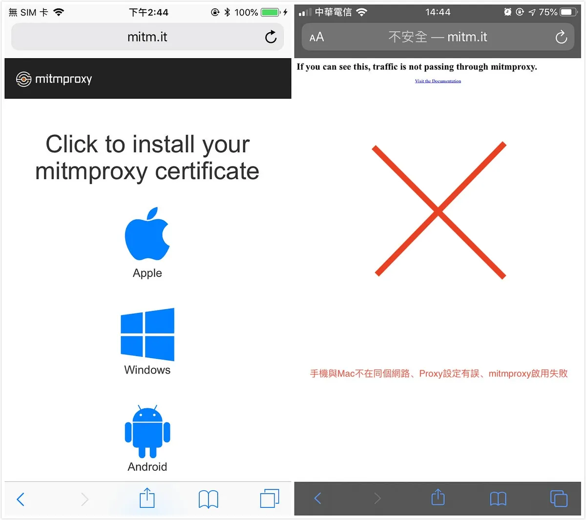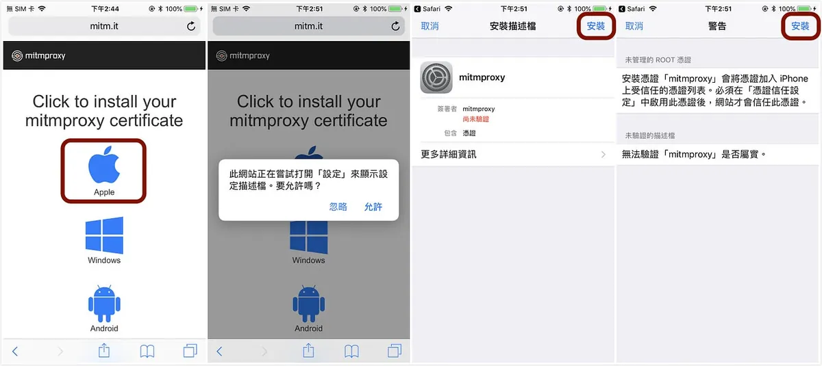 1.スマホのSafariで http://mitm.it を開く