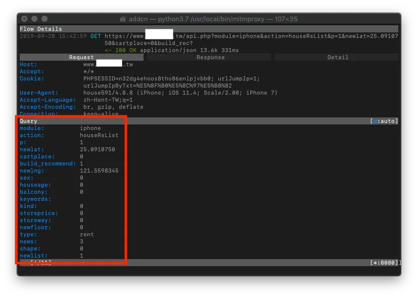 mitmproxyに戻り、記録を確認して、探偵の精神でどのAPIリクエスト記録が目的のものか推測し、詳細を確認しましょう!