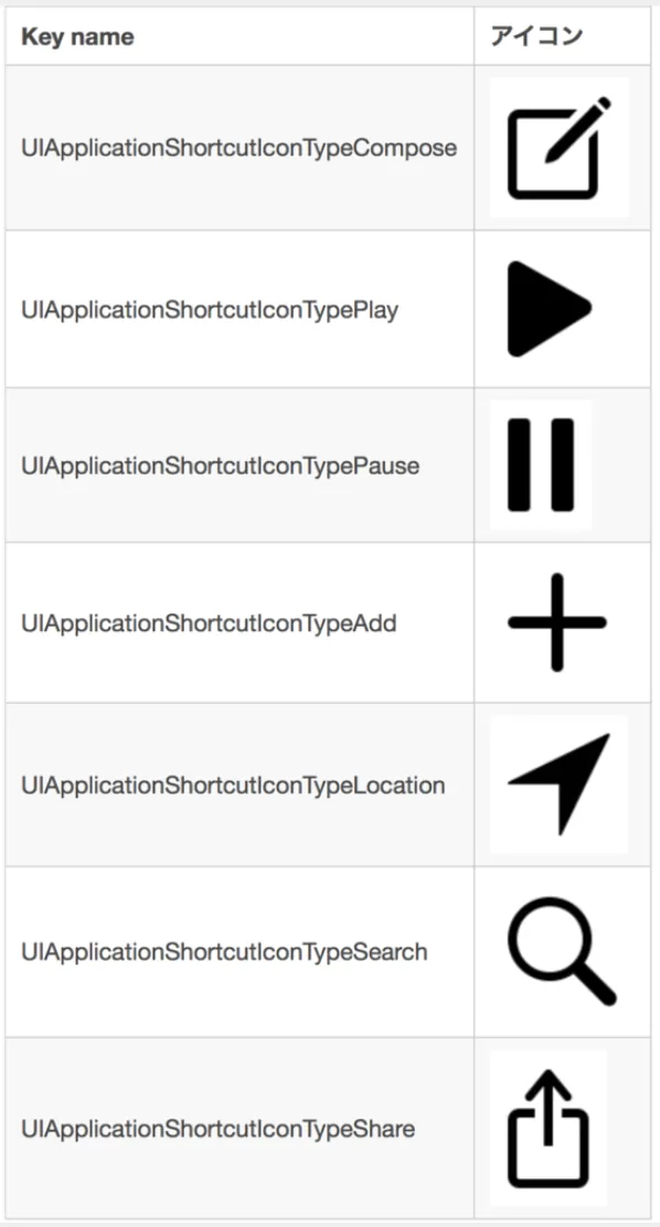 - UIApplicationShortcutItemIconType : システムアイコンを使用する