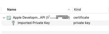 iOS Distribution/iOS Development Certificate の証明書はあるが、対応するプライベートキーがありません