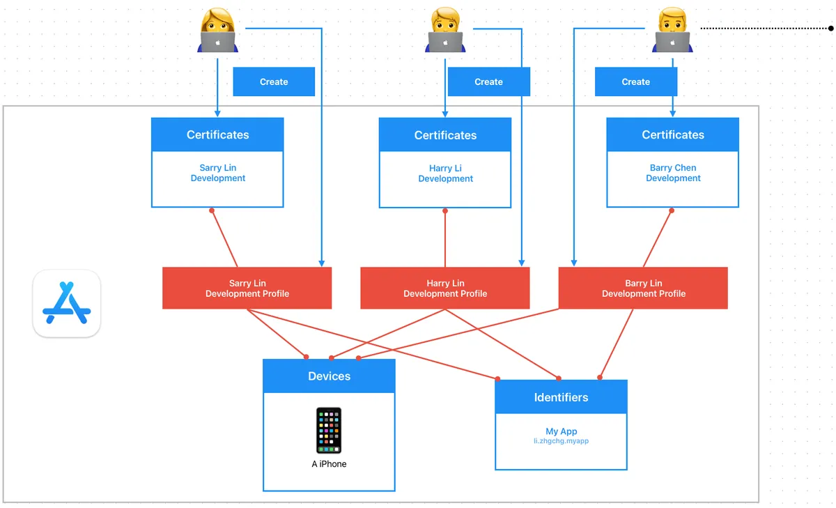 Certificates+Identifiers+Devices の関係の組み合わせ。