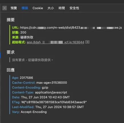 そして現在はリソースファイルのみHTTPキャッシュが設定されており、ページ本体には設定されていません。