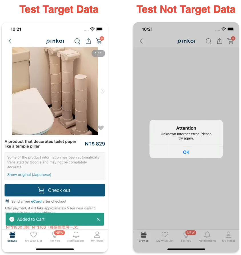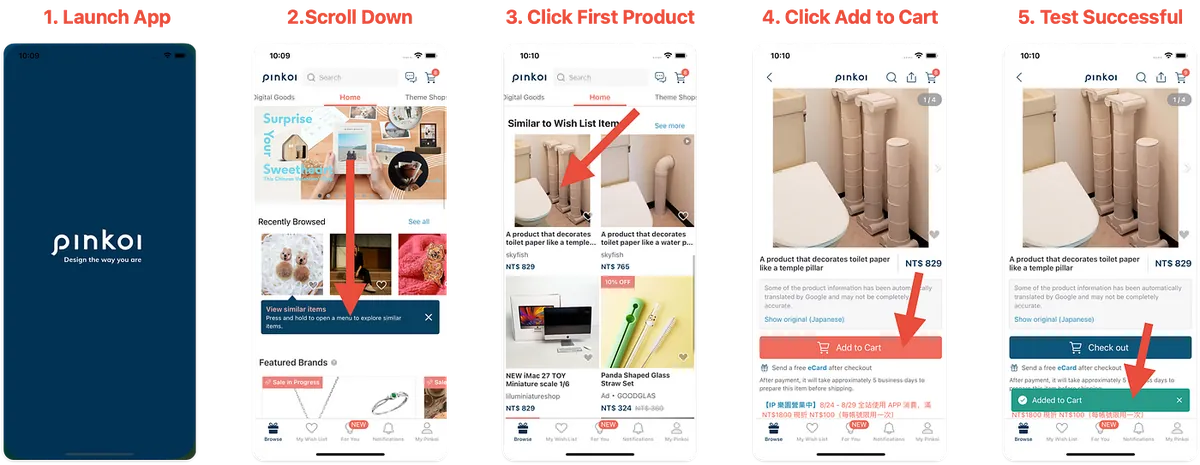 Pinkoi iOS App を例に、以下のフローをテストします: