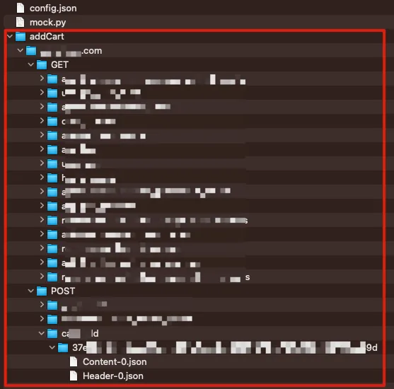 Content-0.xxx、Content-1.xxx(同じリクエストを2回目に送信)…以下同様;レスポンスのヘッダー情報:Header-0.json(Content-xと同じロジック)