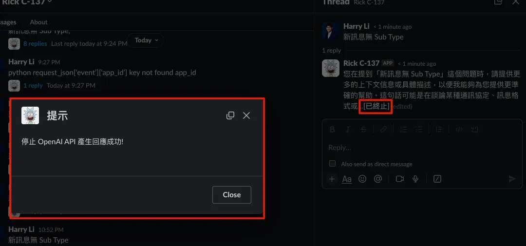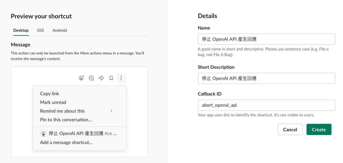 slackOpenModal(triggerID, callbackID, "OpenAI APIの応答停止に成功しました!")