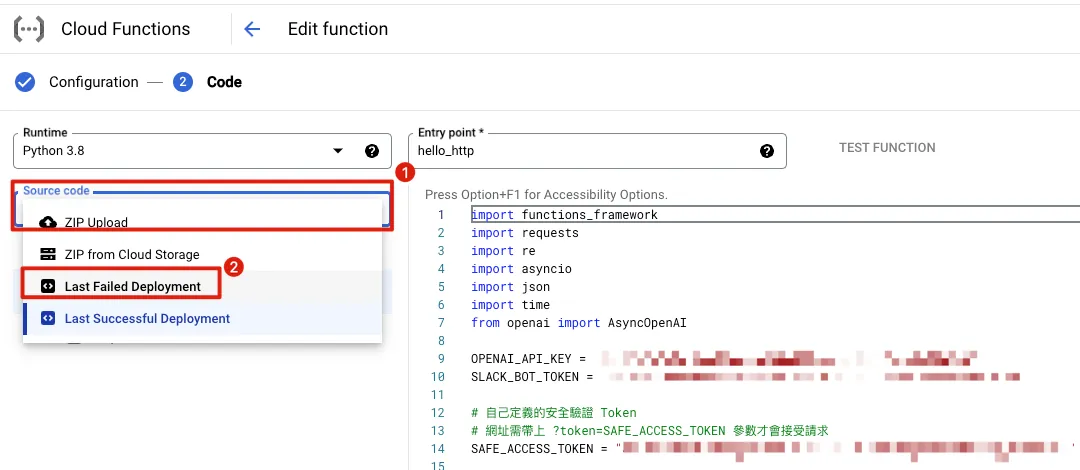 Function を作成できない、または認証情報を変更できない場合は、あなたの GCP アカウントに完全な Google Cloud Functions の権限がないことを意味します。組織の管理者に依頼して、現在の役割に加えて Cloud Functions Admin の権限を付与してもらう必要があります。