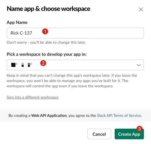 「App Name」を入力し、追加するWorkspaceを選択します。