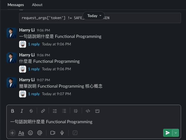 threadMessages = slackGetReplies(eventChannel, eventThreadTS)