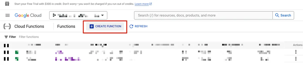 プロジェクトと請求情報を設定した後、「Create Function」をクリックしてください。