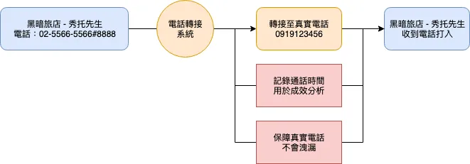 敝サイト( 結婚吧 )や私の( 591房屋交易 )では、ユーザーが店舗や家主と連絡する際に発信する電話番号はすべて当社の転送番号であり、転送センターを経由して目的の電話番号に転送されます。大まかな流れは以下の通りです: