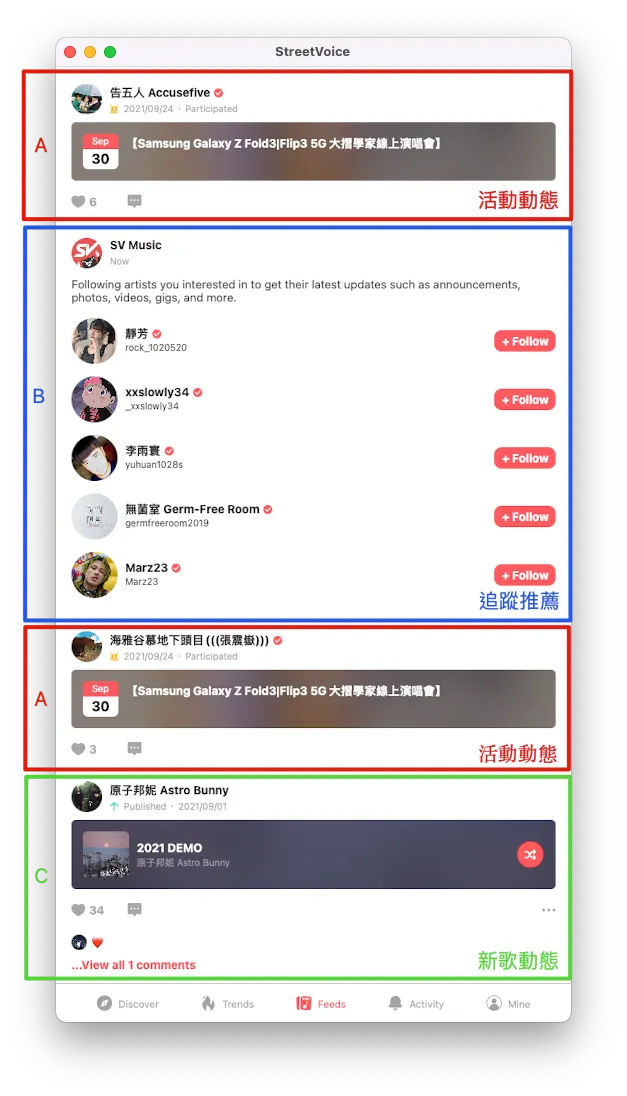 StreetVoice のタイムラインを例にすると: