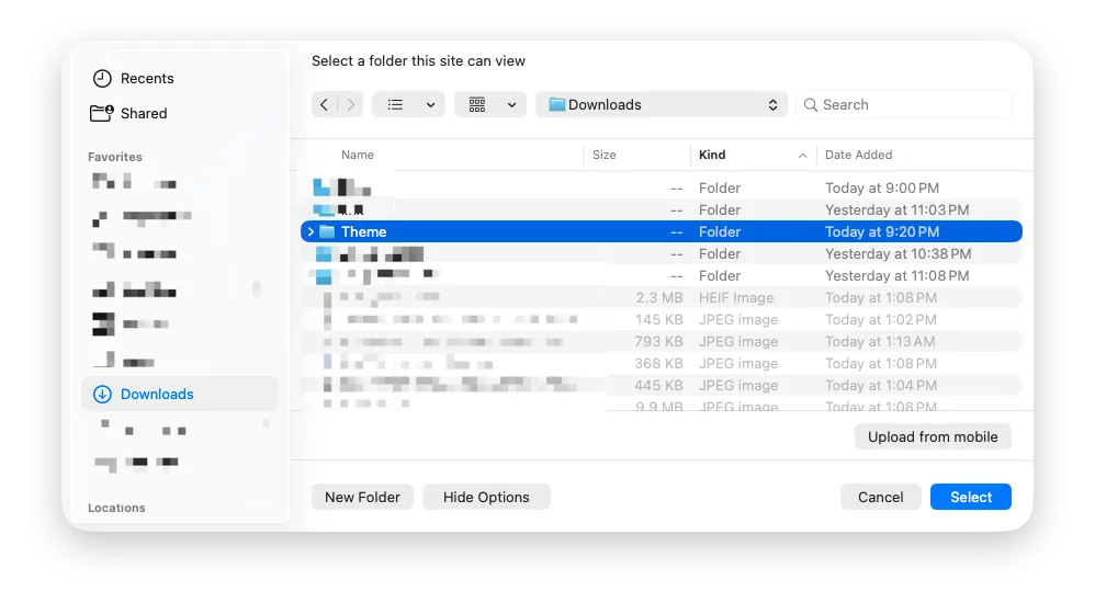 Theme ページのサンプルを Claude Design にアップロードし、「Attach codebase」を選択: