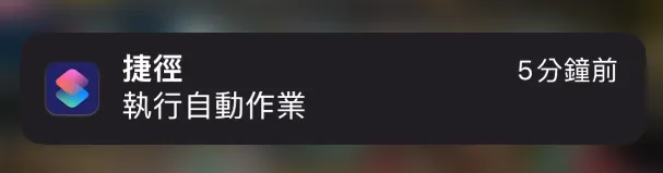 ショートカットの自動化実行後に通知が表示されますが、この通知は閉じることができません。