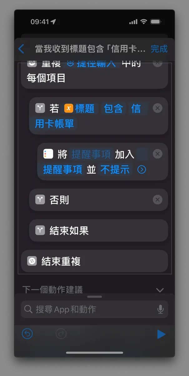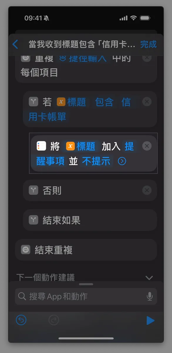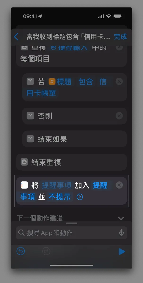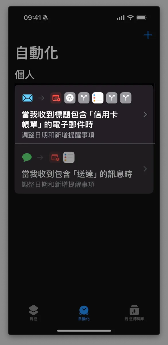 もう一つの生活通知はクレジットカードの請求通知です。ショートカットの自動化でSMSと同様に、メールを受信したときにリマインダーを自動追加できます。ただし、現状では自動化機能がサードパーティアプリに開放されていないため、Appleのメール Appのみでトリガー可能です。