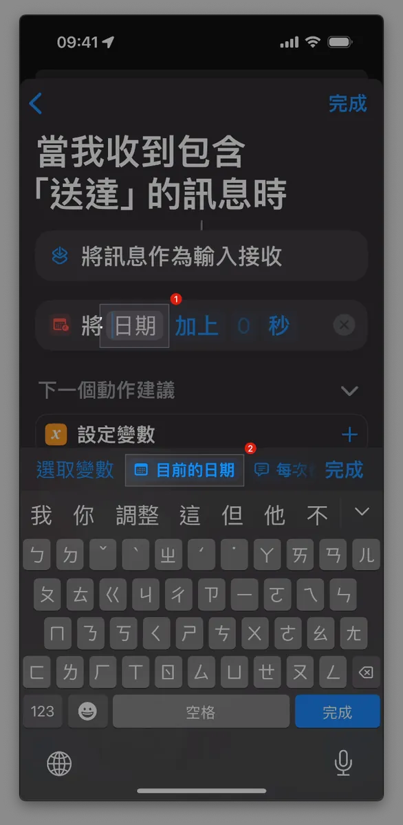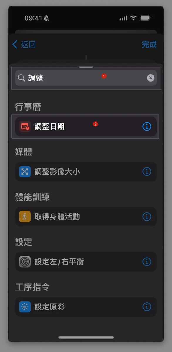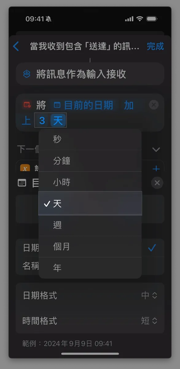 「調整日期」を検索してください。「日付を調整」を選択してください「日付」に「0秒を追加する」の「日付」入力欄を選択してください