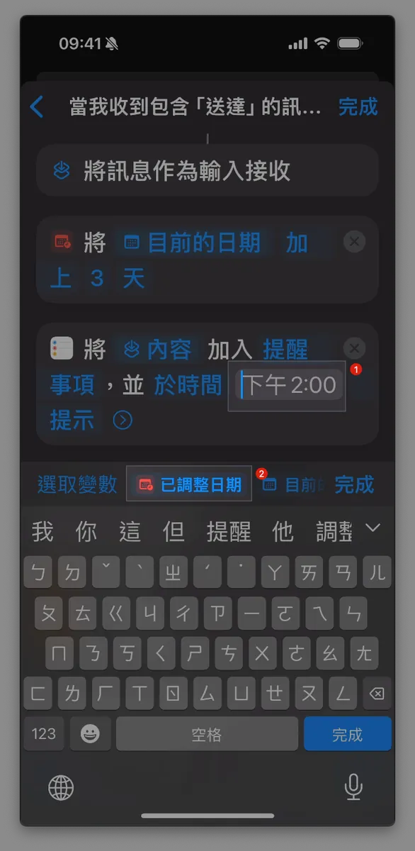 「已在」を含むSMSを受信したときにリマインダーを追加する(Coupangは「已在」を使用)