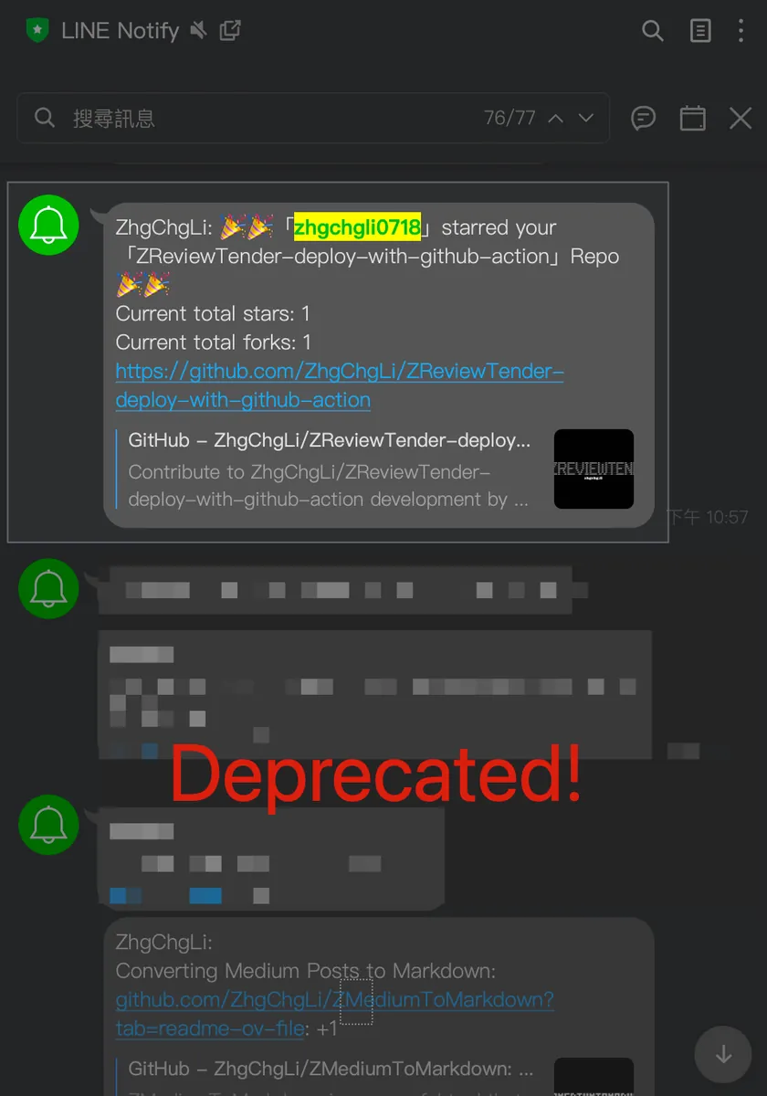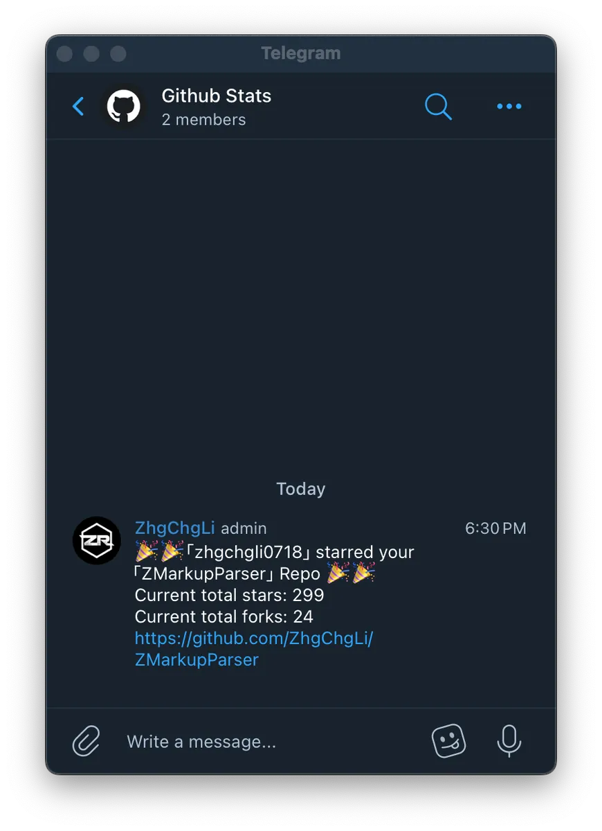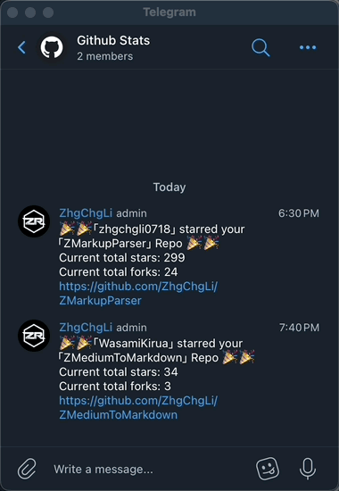 認証成功!誰かが私のリポジトリにスターを付けると、正しくTelegramグループに通知が送信されます!🎉🎉🎉