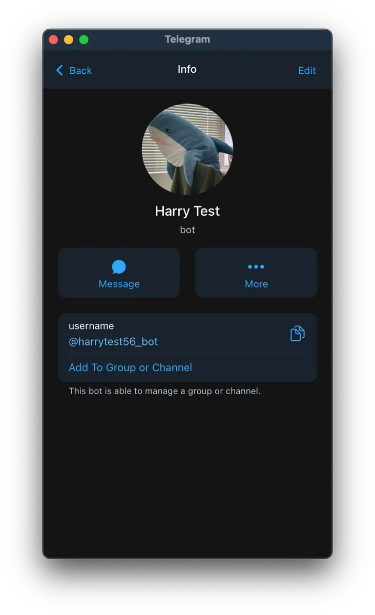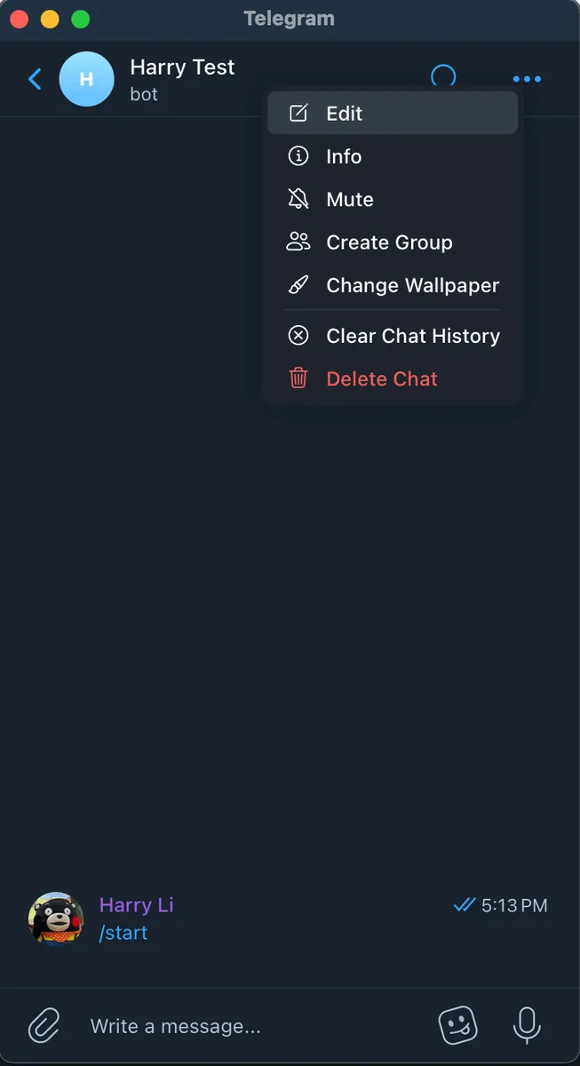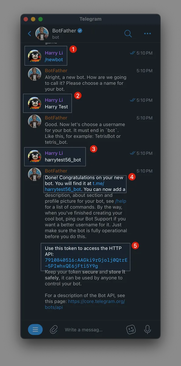 botで終わる必要があります。例:私のはzhgchgli_bot)あなたの Bot のリンク、クリックして使用を開始してください (例: t.me/harrytest56_bot)