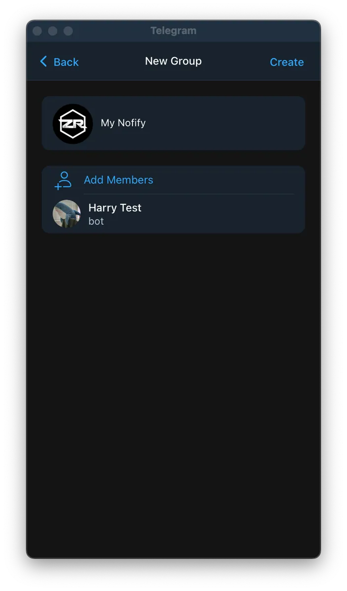Step 2. Telegram通知グループの作成とボットアカウントの追加
