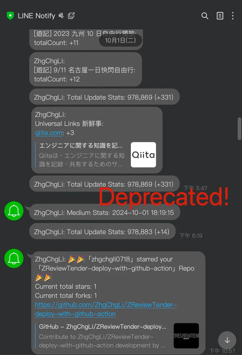 Line Notify公式サイトより引用、Lineは2024年10月8日にLine Notifyを2025年4月1日で完全終了すると発表しました。引き続きLineで通知を受けるには、有料のMessage APIを利用する必要があります。